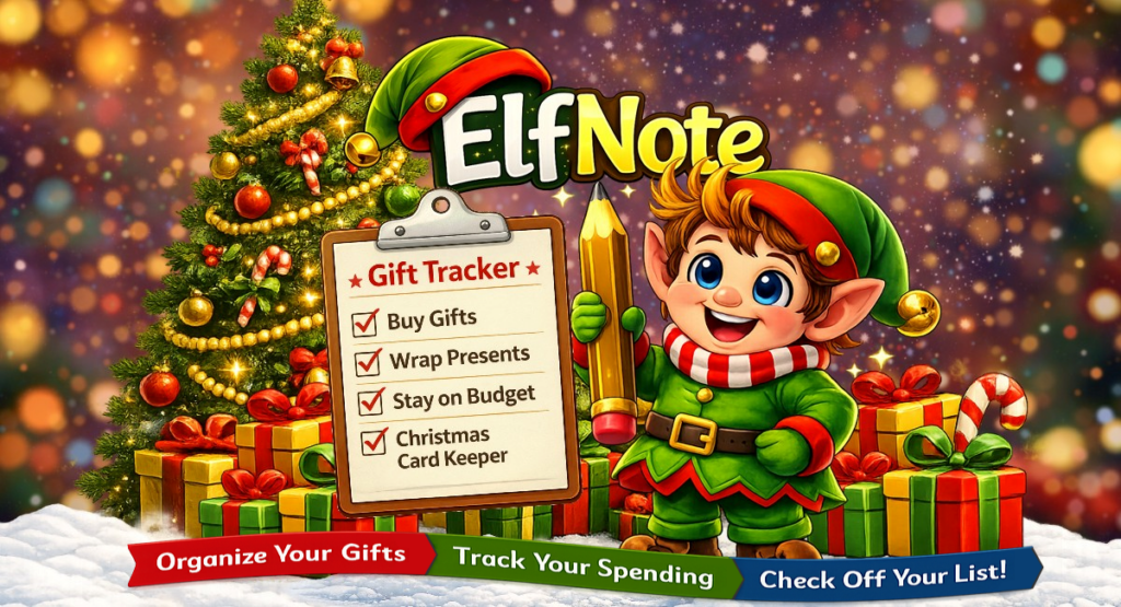 ElfNote is my Christmas gift tracker for organized elves who like to start early and stay sane. It keeps your gift lists, card lists, and “don’t buy that again” memories all in one cozy place.